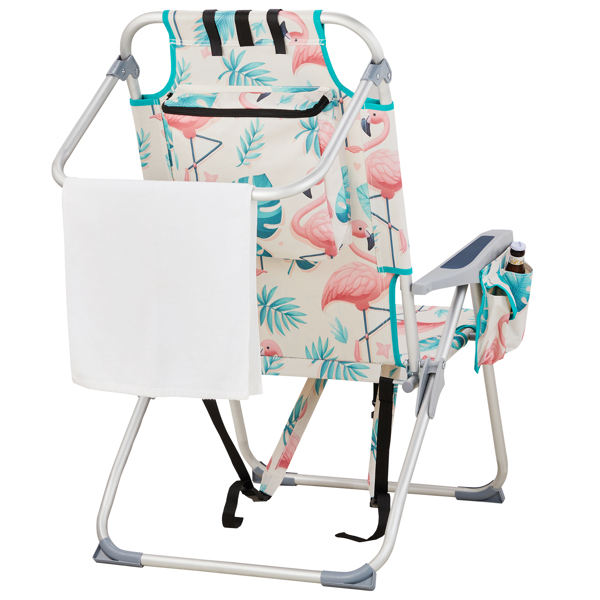 Silver White Flamingo Beach Chair Aluminum Tube Oxford Cloth
