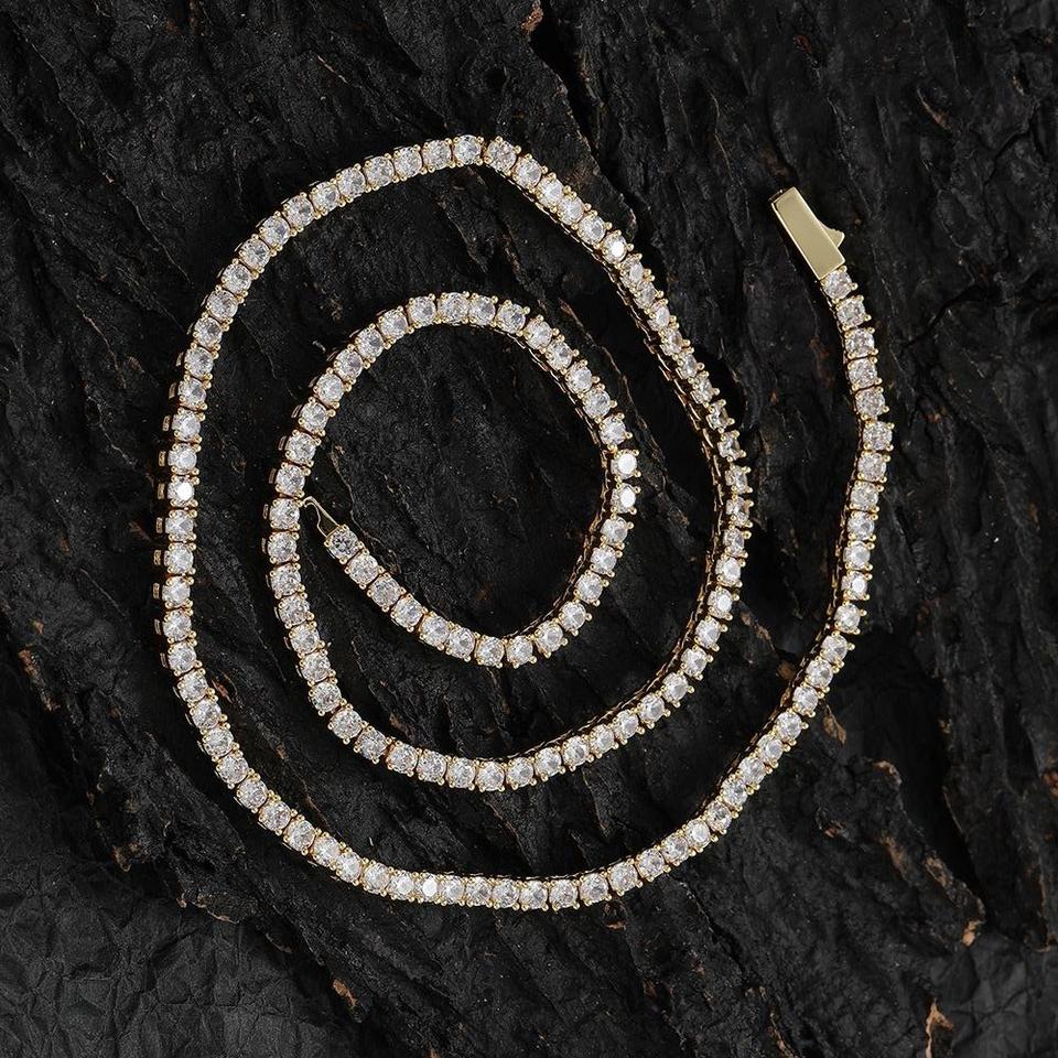 Silver White Rose Gold Iced Chain Necklace with 4MM Diamond Tennis Choker Hip Hop Style Men's & Women's Wedding Engagement Gift