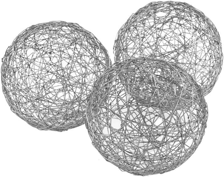 Set of 3 Silver Wire Spheres Handmade Letterpress Printed Metal Orb Balls for Christmas Table Decor Home Office Kitchen