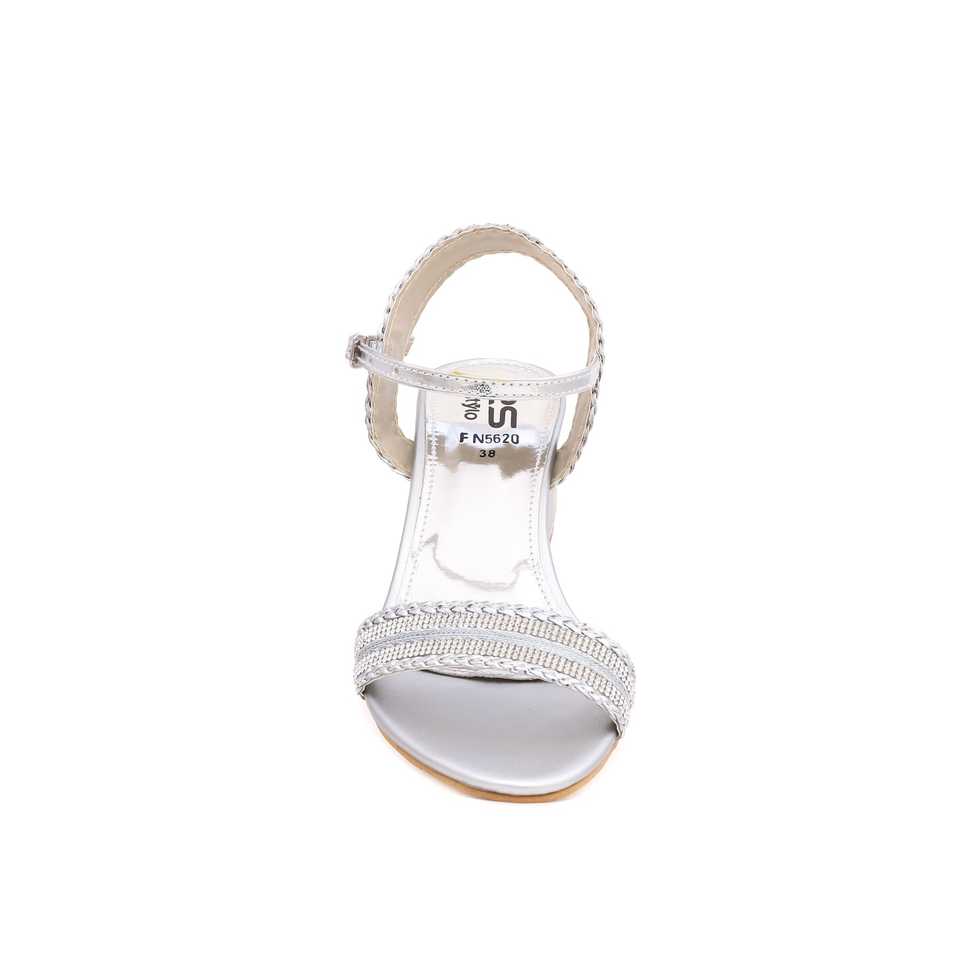 Silver Women's Heeled Sandals with Open Toe Fashionable ANKLE STRAP Lace-up PU Insole FN5620