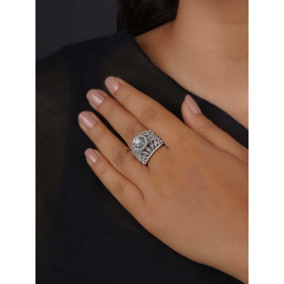 Silver Plated AAA+ Korean Crystals Faux Diamond Ring with CZRNG90 for Weddings Sizes 5,6,7