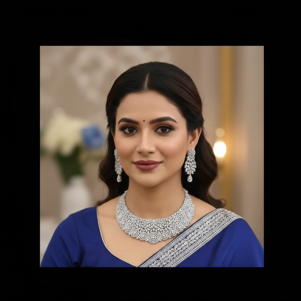 Silver swirl Royale Choker necklace & earrings set featuring intricate spiral swirl patterns with high-sparkle white stones