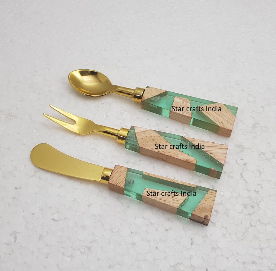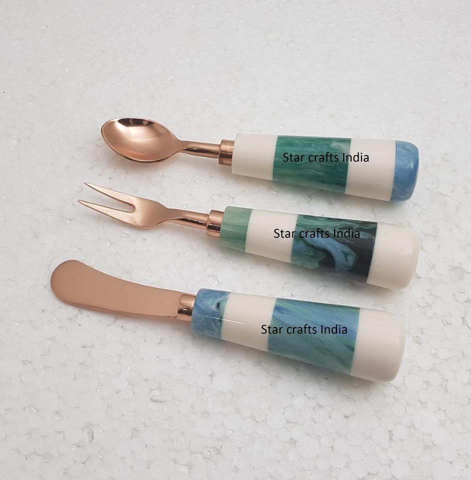 Silvery Daily Demand Resin Handle Spoon & Stainless Steel with Silver Plated Spoon Fork & Knife Set of 3