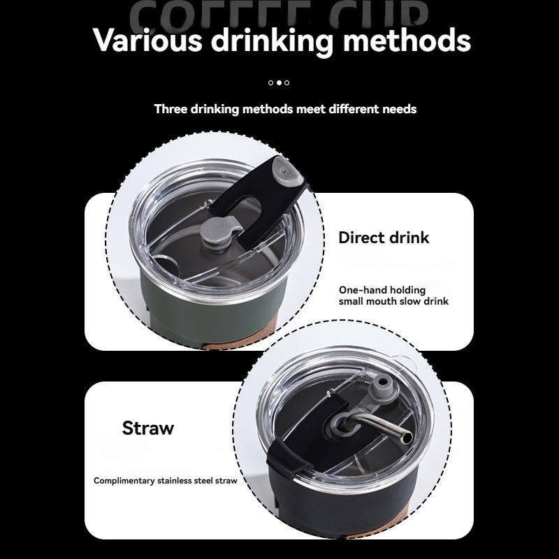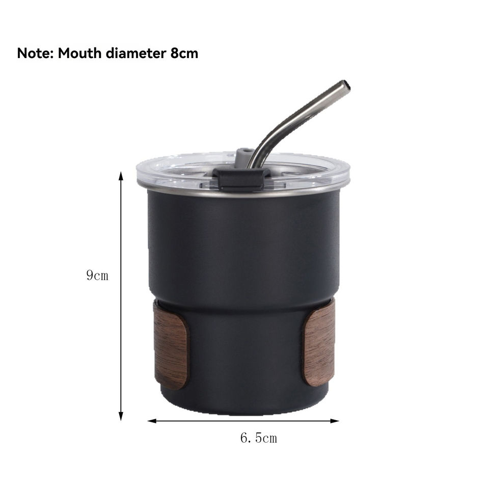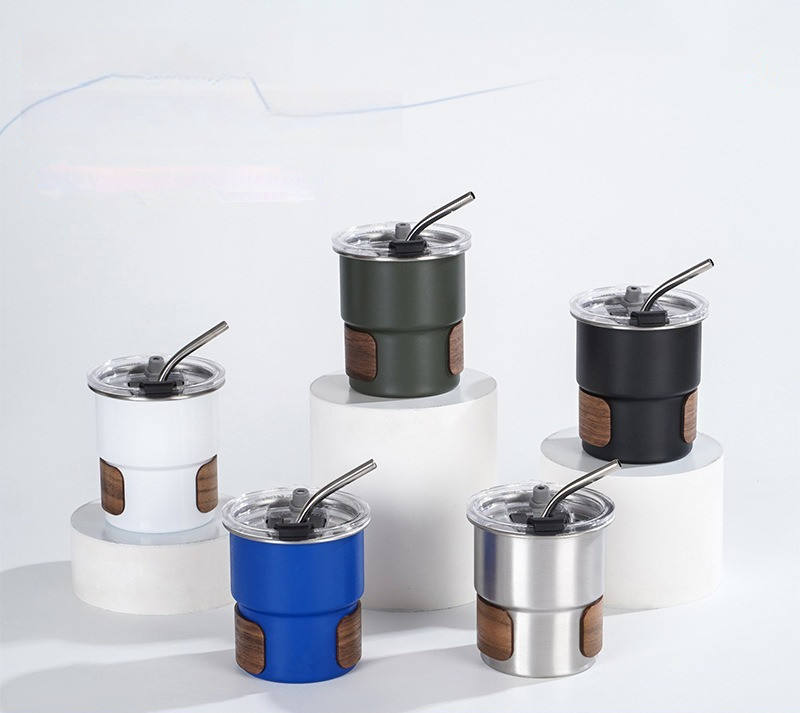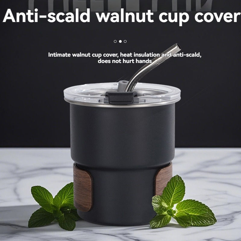 Simple 304 Stainless Steel Step Cup Wooden Insulated Cup Cover Outdoor Portable Coffee Cup