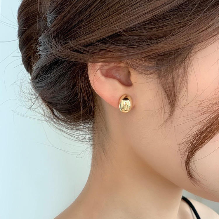 Simple 925 Sterling Silver Needle Stud Earrings Women Gold Silver Color Bean Earrings for Female Party Earrings