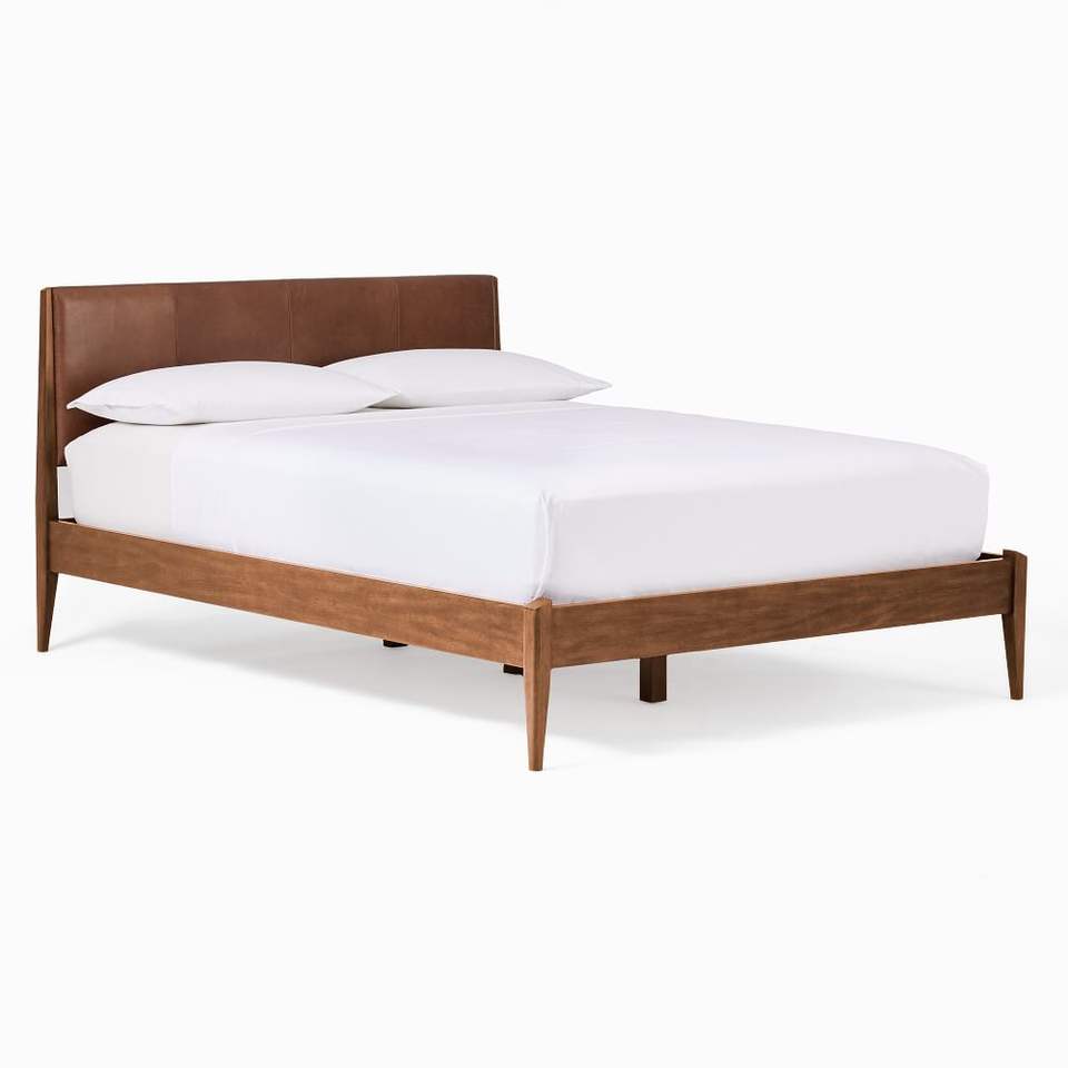 Simple and Comfortable Teak Antique Wooden Bed With Leather Back