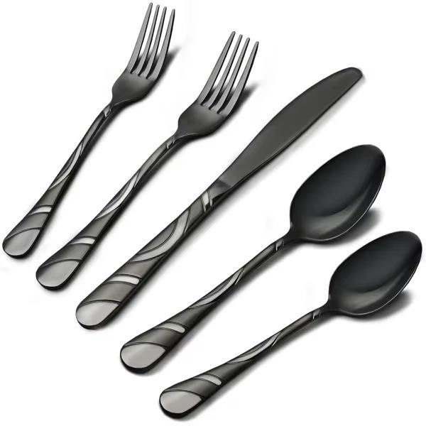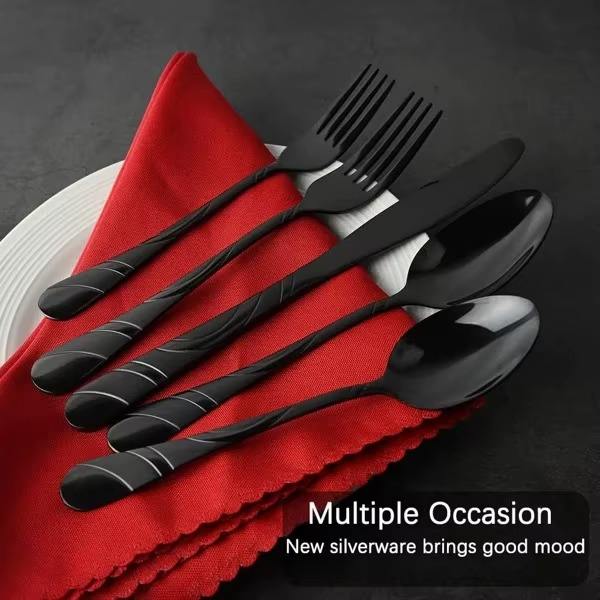 Simple Black Finished Stainless Steel Cutlery Set Perfect for Restaurants Office Lunches Homes and Daily Eating Tableware