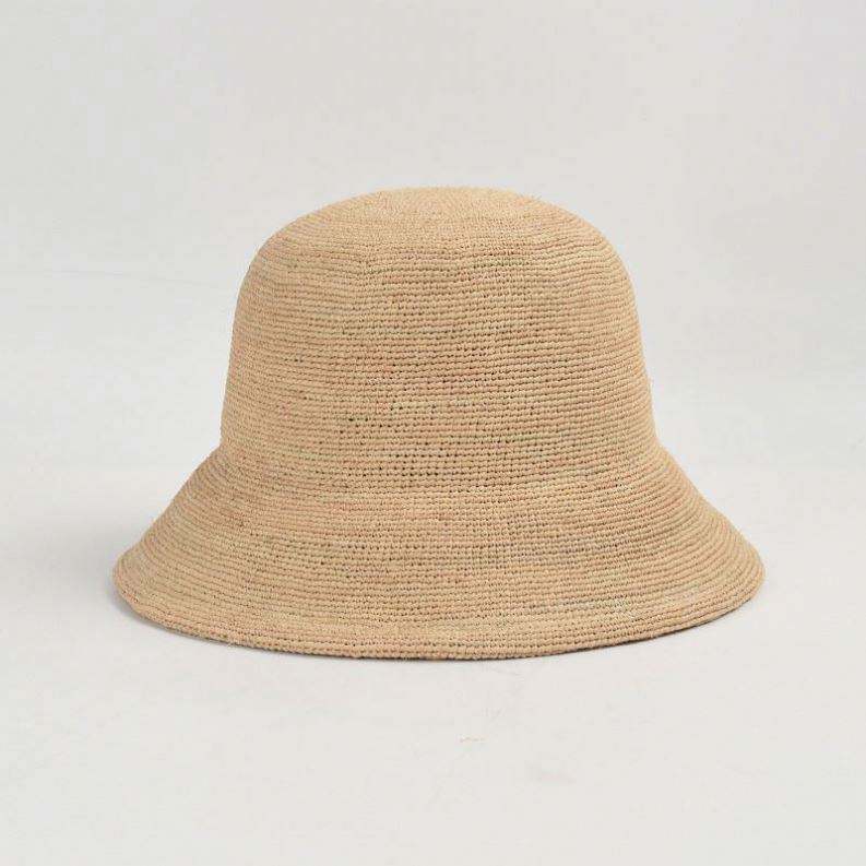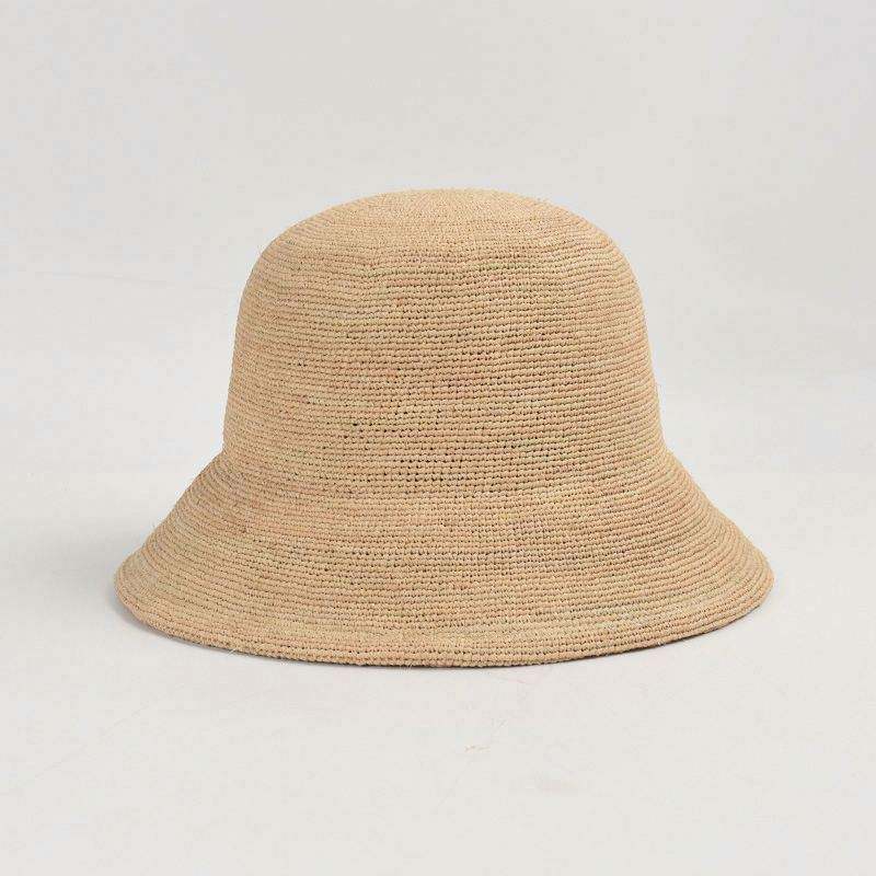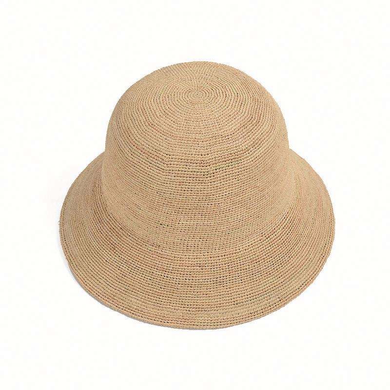 Simple Casual Fine Hand Hook Raffia Straw Bucket Hat Women Summer Sun Shade Sunscreen Outdoor Sun Bucket Hat Straw Hat