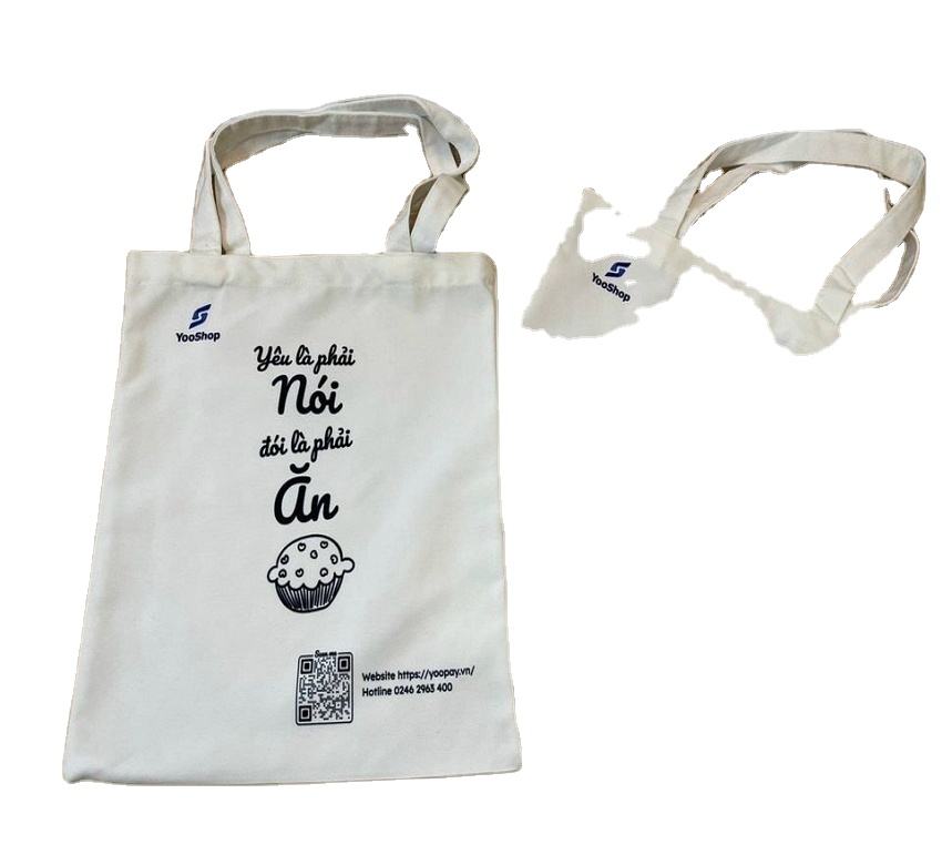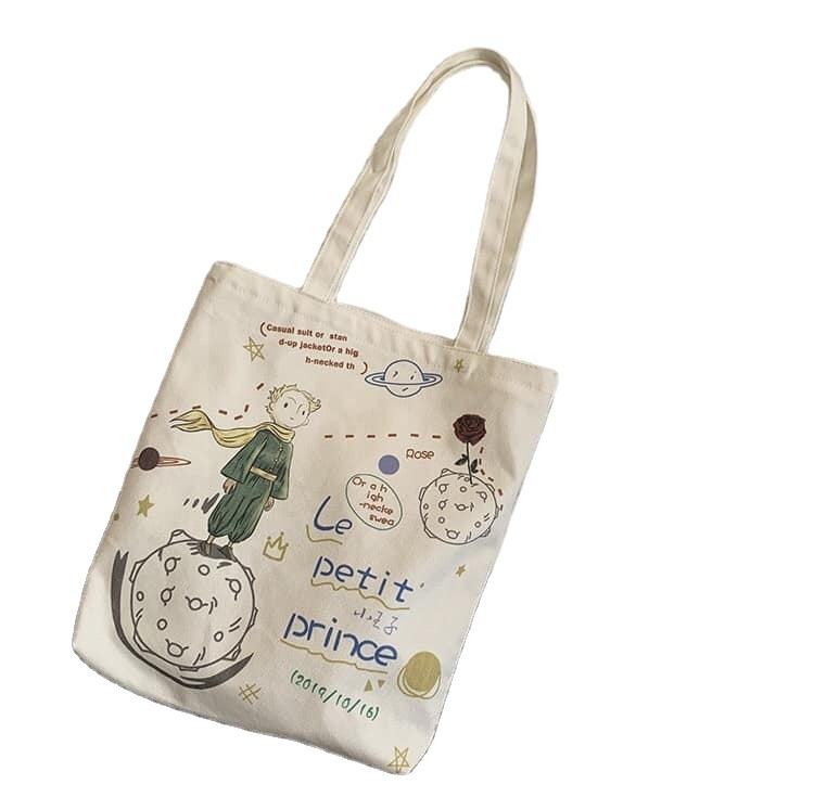 Simple Cotton Canvas Handbag with Dot Pattern Practical for Shopping