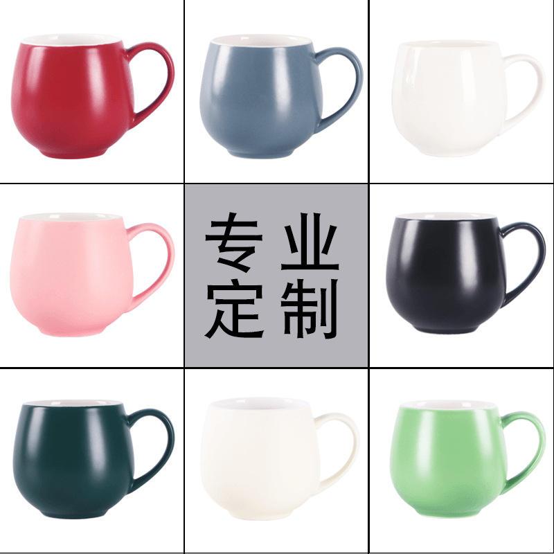 Simple Cute Large Bellied Ceramic Mug Solid Color Pink For Breakfast Coffee Milk Personalized Gift Wholesale Single Set