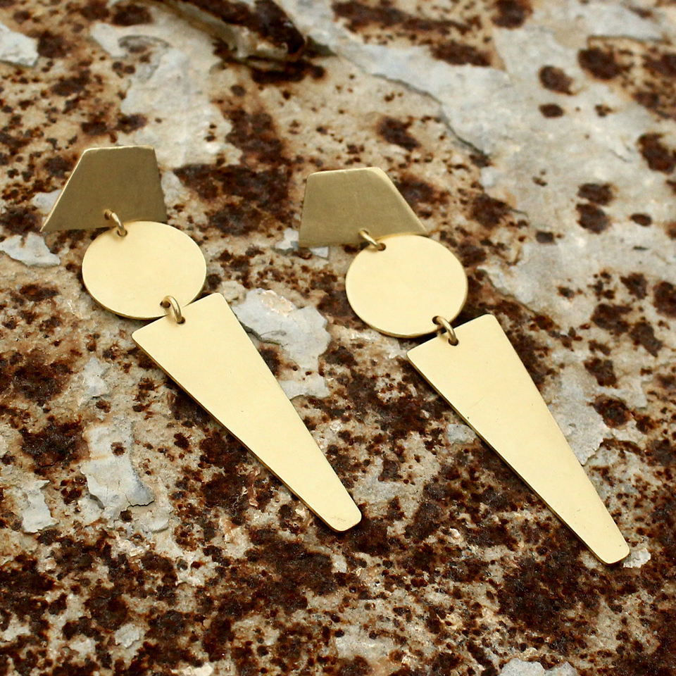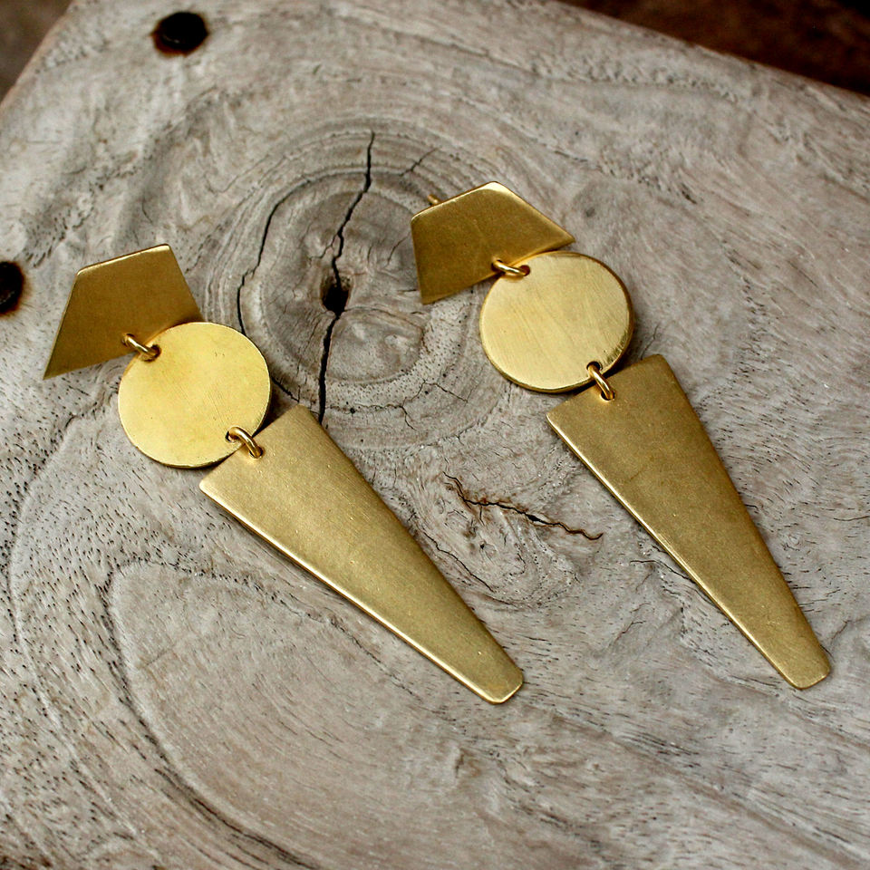 Simple Design 18k Gold - Plated Brass Unique Style With Geometric Pattern Drop And Dangle Earring Fashion Jewelry For Women