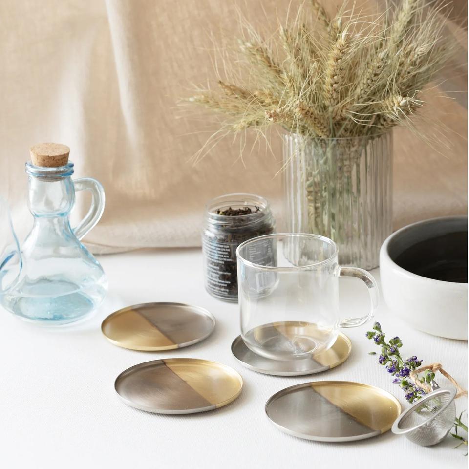 New Arrival Simple Design Golden Color Metal Tea Coasters Set of 4 With Customized Size and Color at Wholesale Prices