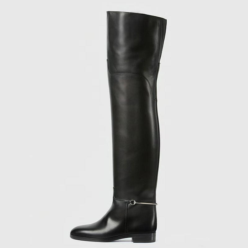 Simple Design Round Toe Shoes Over Knee High Women Flat Long Boots Wide Top Thigh High Boots for Ladies