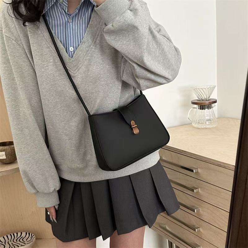 Simple Design Shoulder Crossbody Bag with Metal Clasp for Women