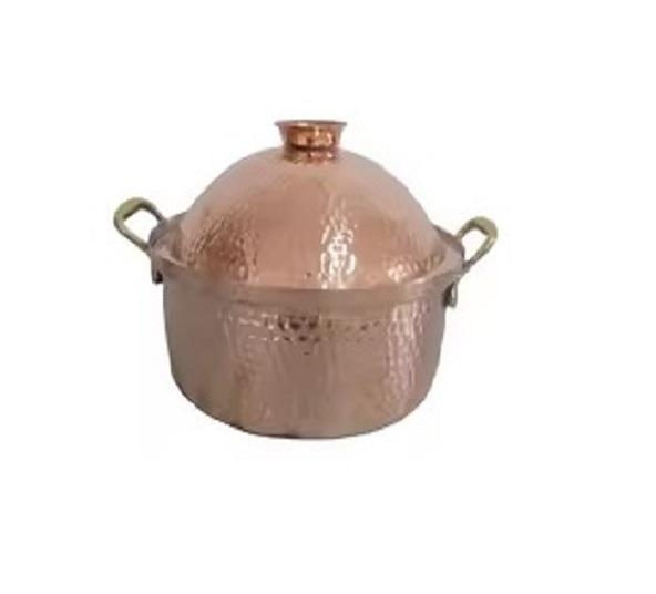 Simple Design round Copper Food Warming Pot with Gold Brass Handle Lid Kitchenware Tabletop Hot Soup & Stock Pot