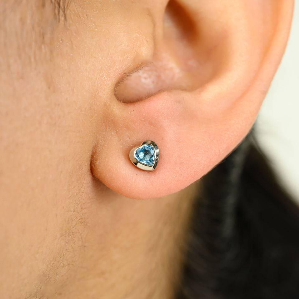 Simple Elegant 0.52 Ct. Heart Shape Blue Topaz Minimal Stud Earrings For Women & Girls 14K Pure White Gold Everyday Jewelry