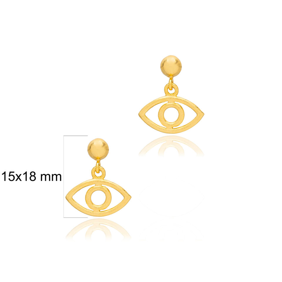 Simple Eye Shape 22K Gold Plated Stud Earrings Turkish Wholesale 925 Sterling Silver Jewelry