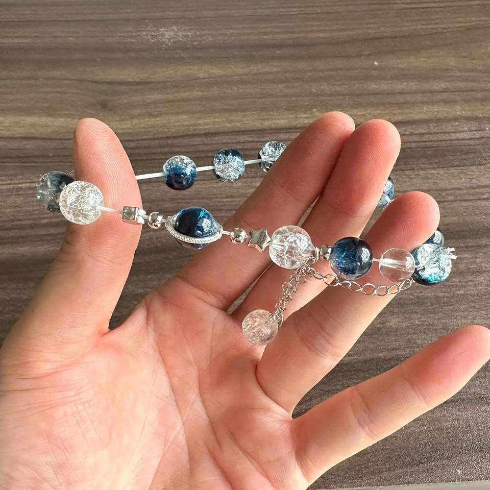 Simple Fashion Charm Bracelet with Alloy Star Galaxy Saturn Planet Glass Beads Link Chain Charm