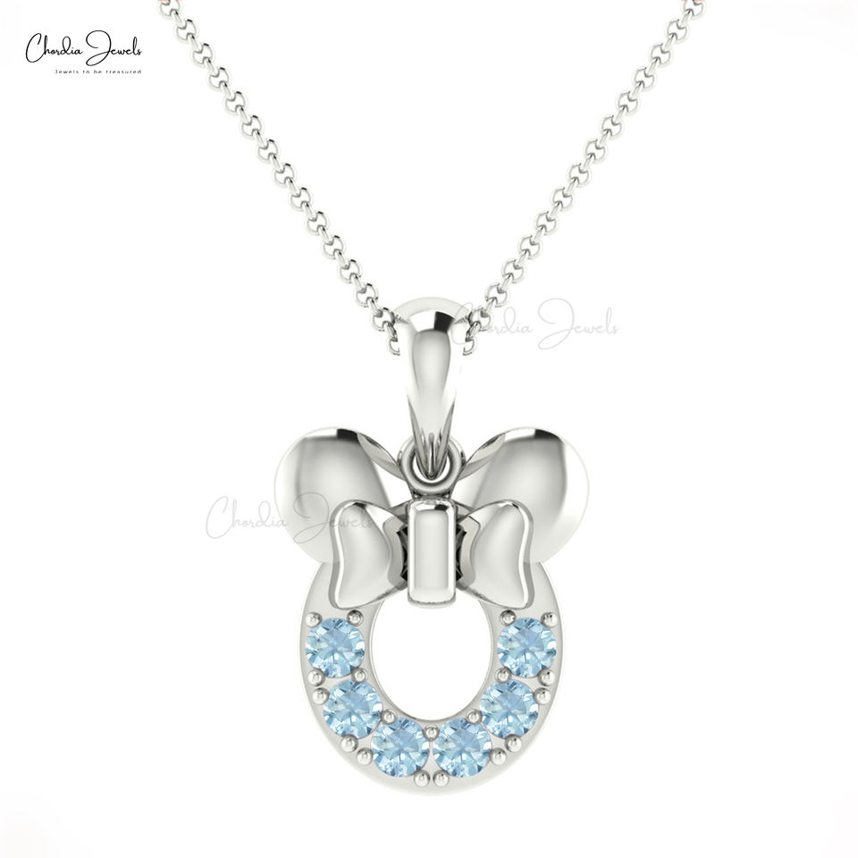 Simple Fashion Personality Creative Mickey Mouse Pendant Natural Aquamarine Gemstone Kids Pendant Necklace 14k Real Gold Jewelry