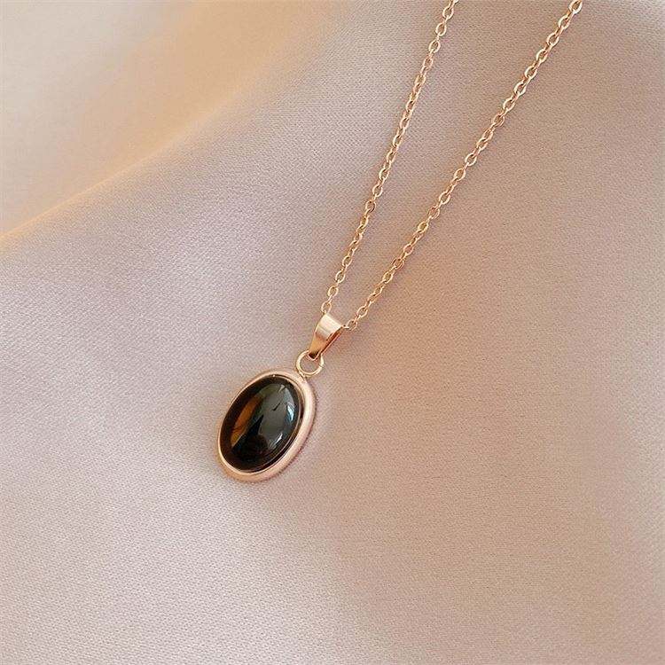 Simple Fashion White and Black Opal Pendant Gold Plated Female Retro Necklace Stainless Steel Clavicle Chain for Women