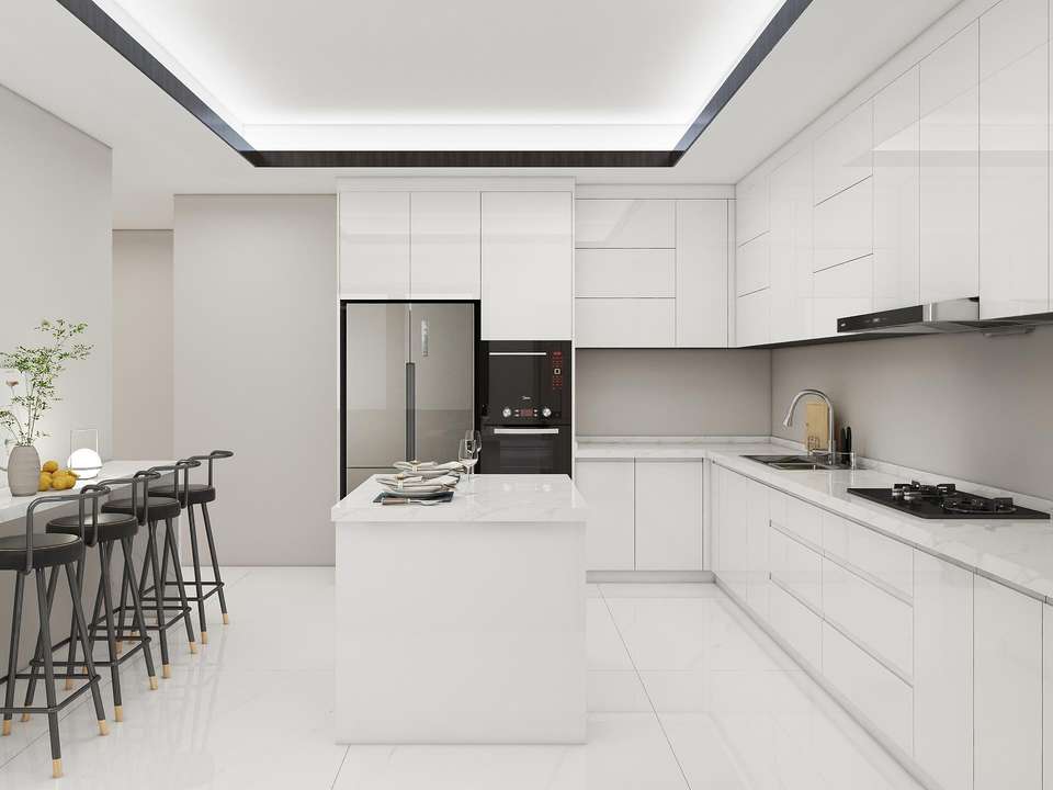 Lacquered, White, Laminate, Black, High GlossCabinet Finish