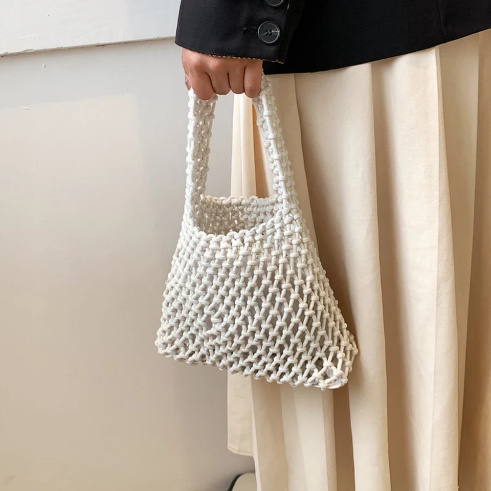 Simple Handmade Cotton Rope Shoulder Bags Macrame Handbag Vintage With Tassel Crochet Macrame Beach Bag