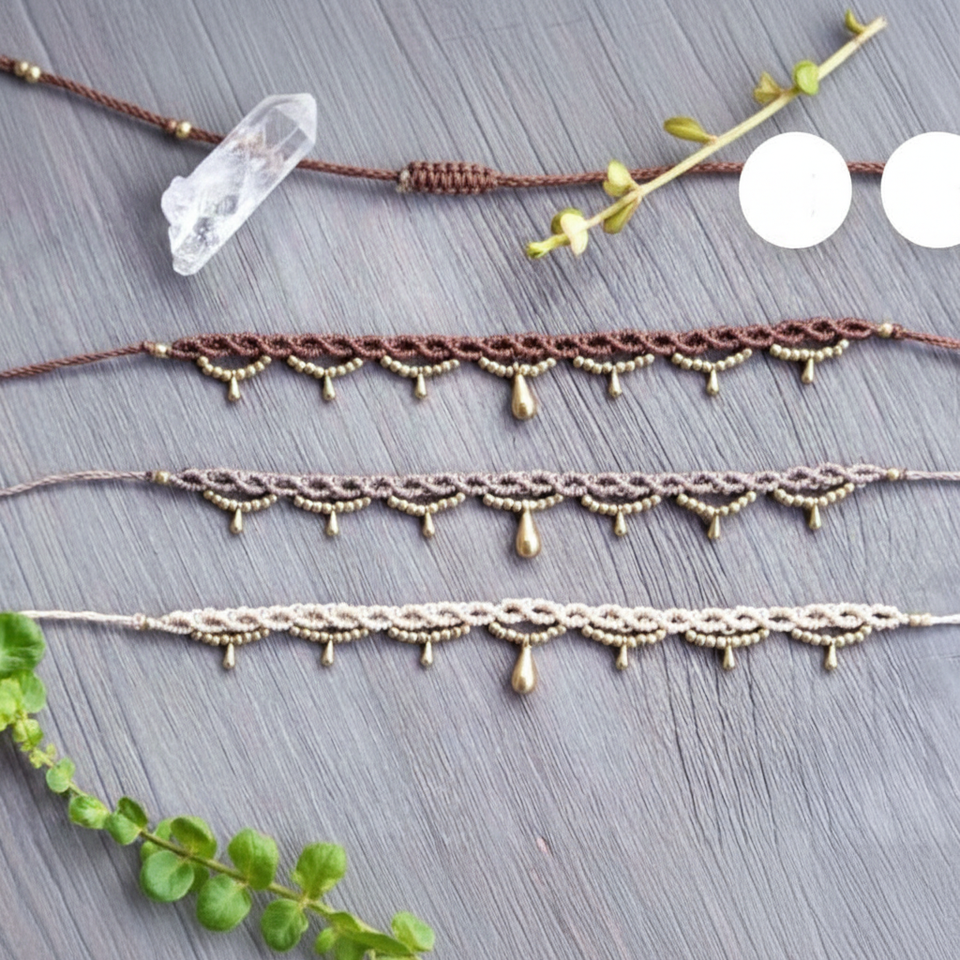 Simple Handmade Macrame Anklet With Mix Chord Color & Finding Small Brass Beads Adjustable for Happy New Year Gift Wedding Gift