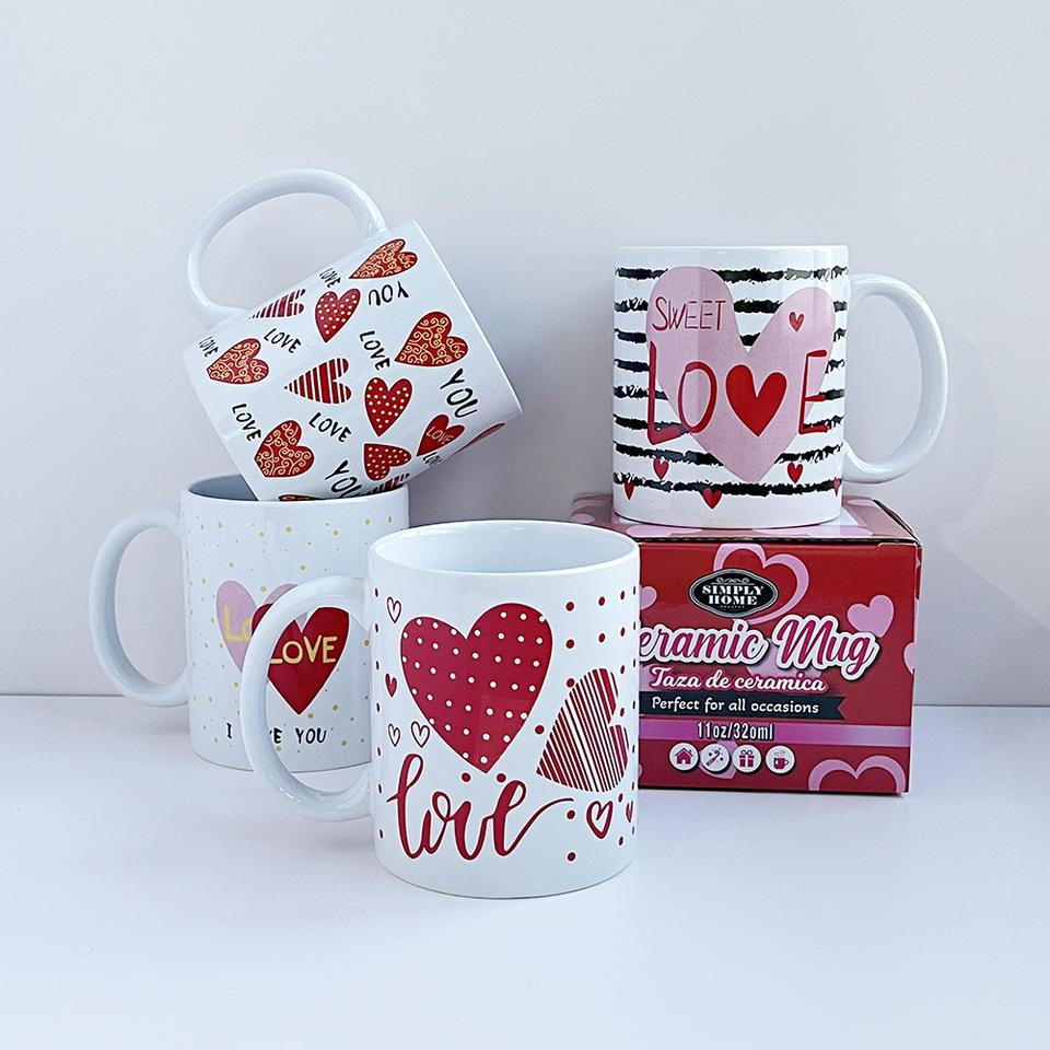 Simple Home Ceramic Mug 11oz Valentine Love Design Dishwasher Safe Gift Cup