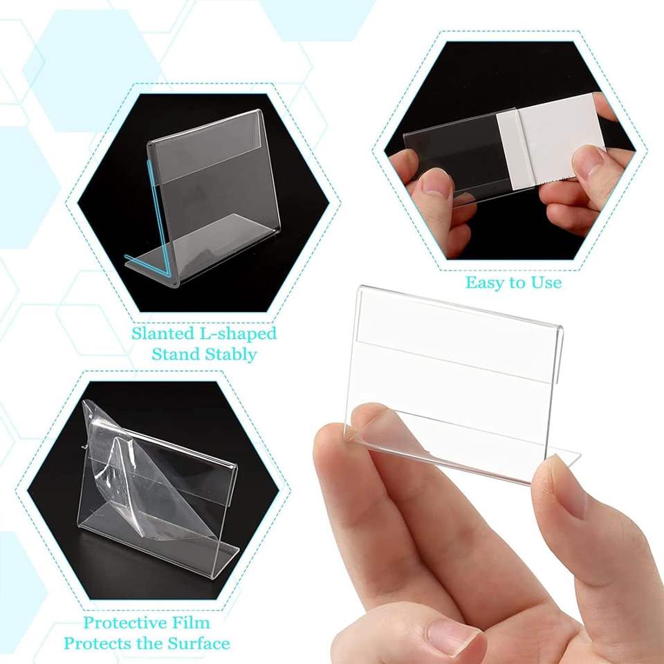 Simple L-Shape 3x2 Inches Acrylic Sign Holder Table Display Stand for Label Price Tags Name Card Holder