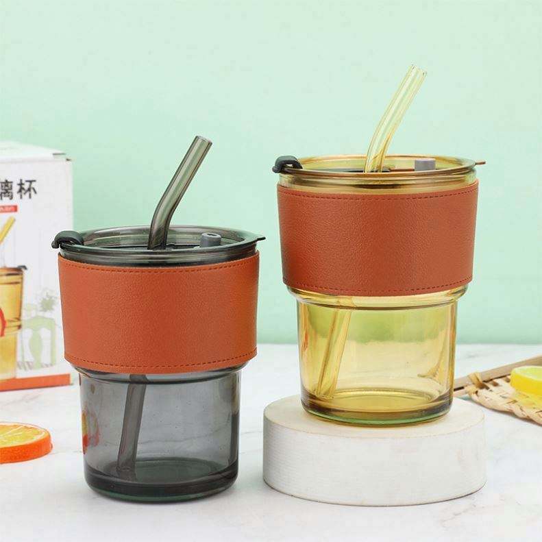 Simple Light Luxury Retro Eco-Friendly Glass Juice Mug with Straw Watertight Customizable Colors & Logo Business Gift Drinkware