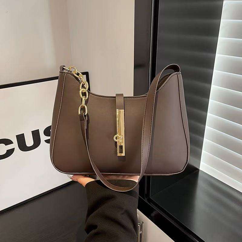 Simple Metal Buckle PU Leather Shoulder and Crossbody Bag for Women