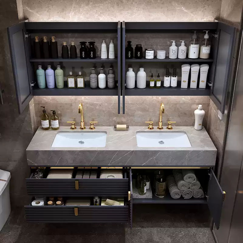 Simple Modern Bathroom Cabinet Wash Basin Cabinet Combination Rock Plate Washing Table Double Basin Bathroom Cabinet Custom