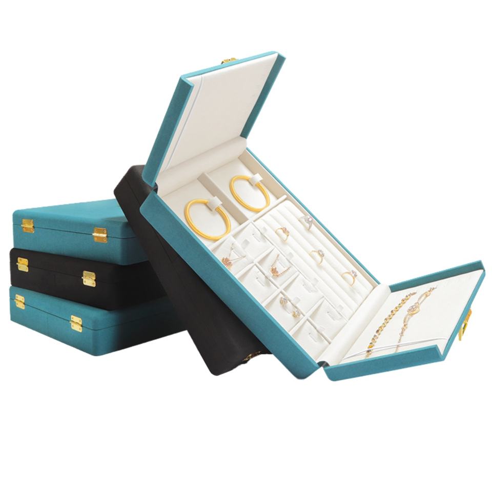 Simple Modern Microfiber extra Large Velvet Lining Jewelry Box Multifunctional Ring Earring Necklace Storage Blue/Black