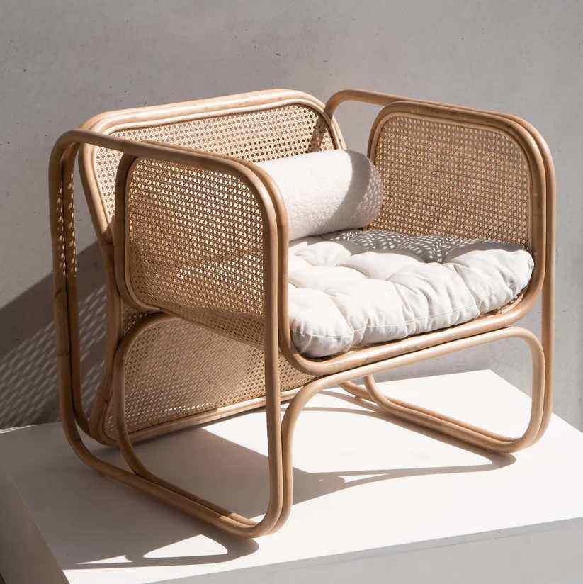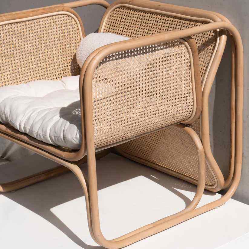 Simple Nordic Style Garden Balcony Patio Lounge Chair Furniture Wooden Armrest Rattan