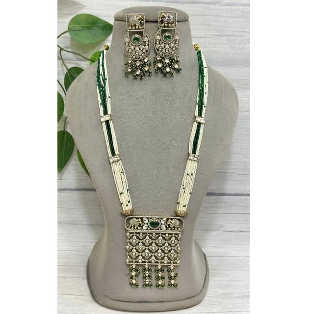 Simple Premium Quality Victorian Polish Moissanite Polki Kundan Pearl Pendant Necklace Set for Wedding and Party Wear for Women