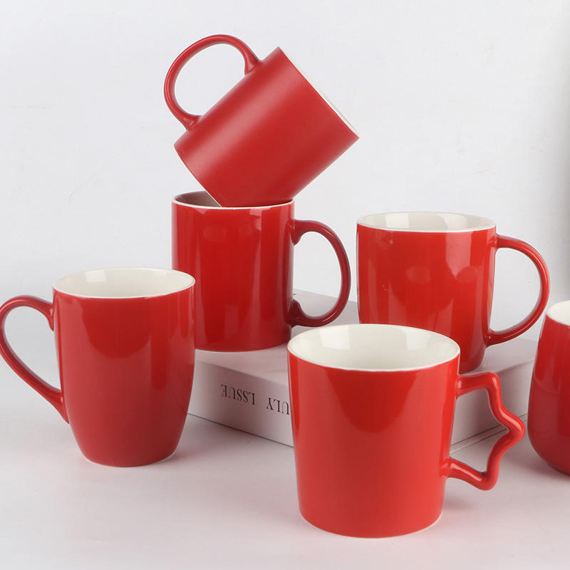 Simple Red Ceramic Mug Single Piece Solid Color For Office Home Or Couple Use