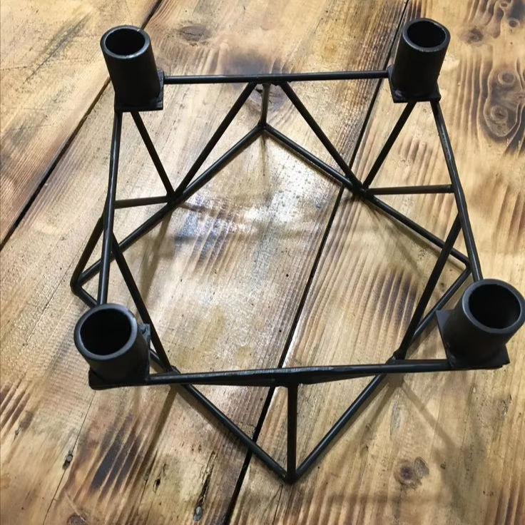 Simple Square 4 Head Black Candle Holders Handmade Decorative Candlestick Stand for Wedding and Dining Table Decor