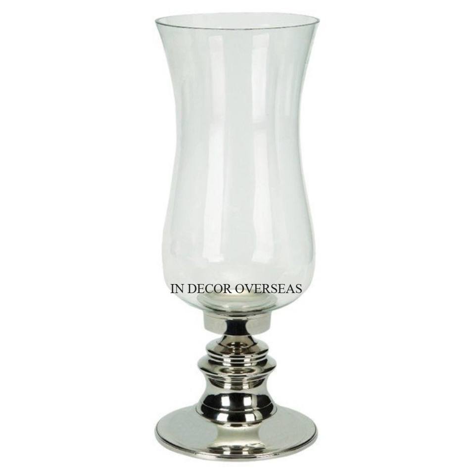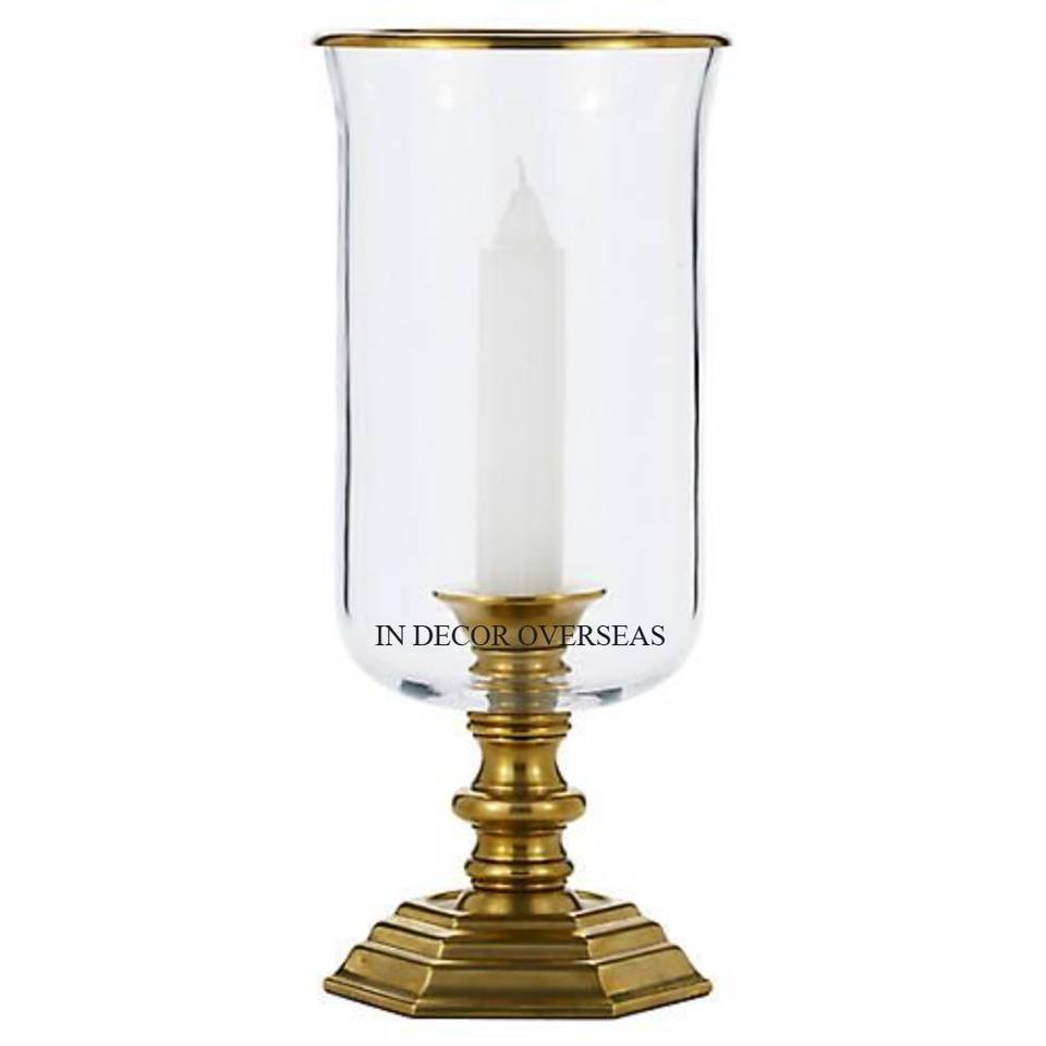 Simple Standard Designer High Grade Gold Plated Metal Stand And Clear Glass Made Hurricane Candle Holder Table Decor Centerpiece