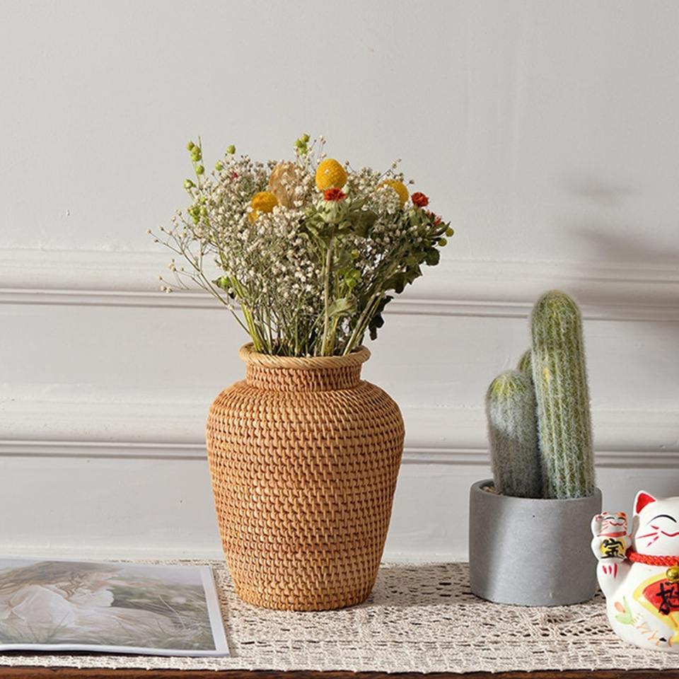 Simple Style Rattan Flower Vase Handmade Decorative Small Vase for Home & Garden Wholesales Made in Vietnam Customizable