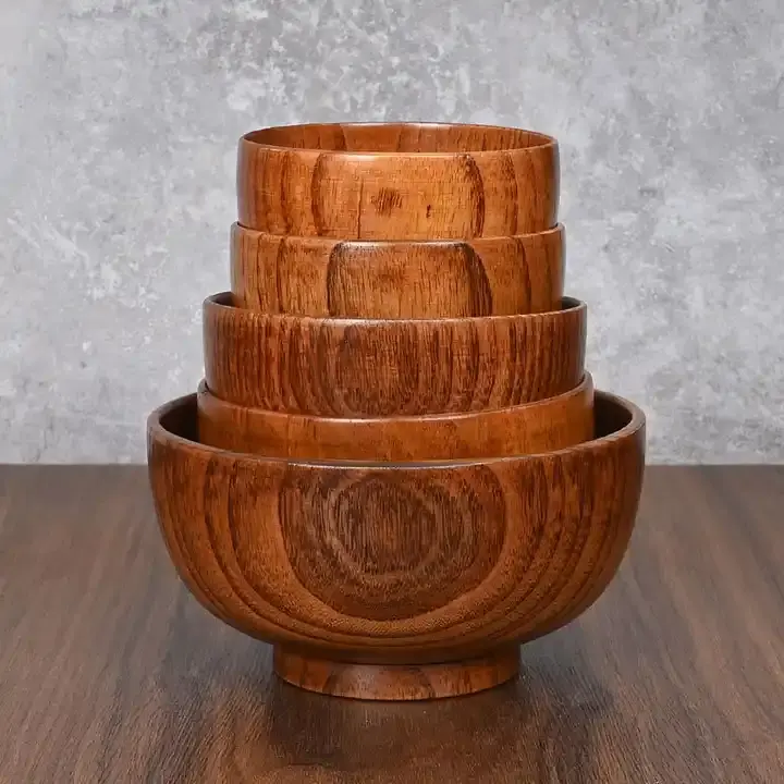 Handmade Vintage Style round Mango Wood Rice Bowl Simple Serving Bowl for Kitchen or Home Use Worldwide Supply