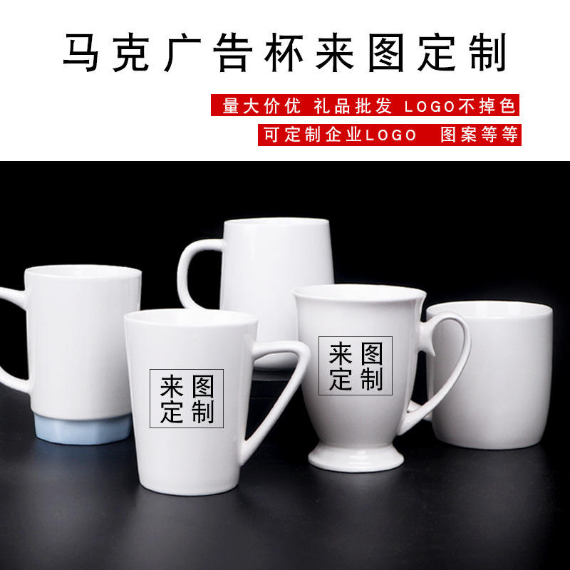 Simple White Ceramic Mug 320Ml With Handle Solid Color For Home Use Water Milk Cup