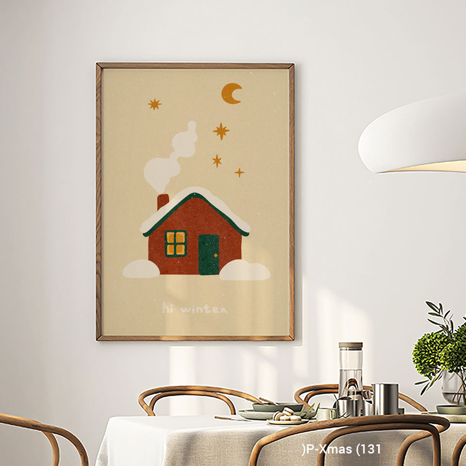 Simple Winter House and Stars Modern Canvas and Wood Frame Wall Decor Wholesale