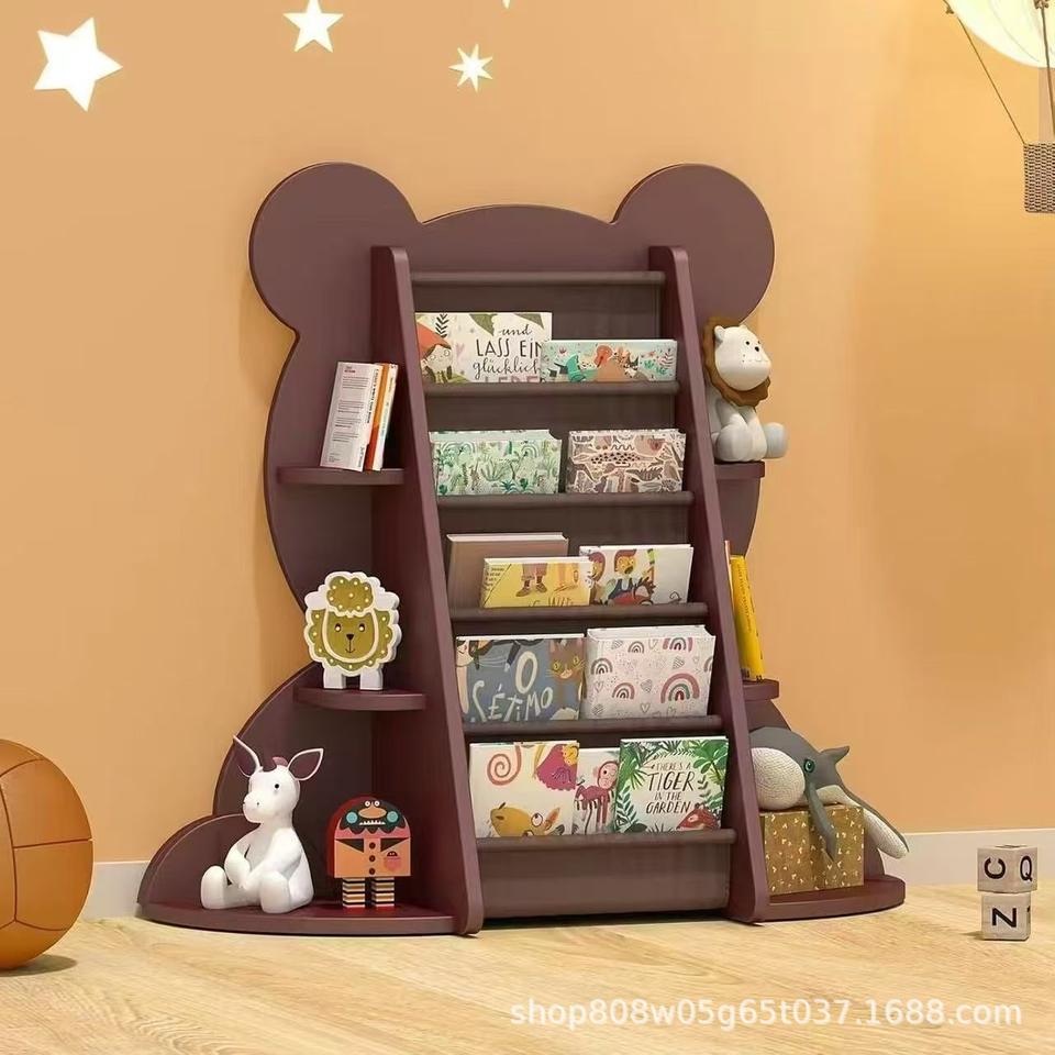 Simple Wooden Baby Bookshelf 5 Tier Solid Wood Shelf For Kids Room Storage With Animal Design Age 2-4 Years