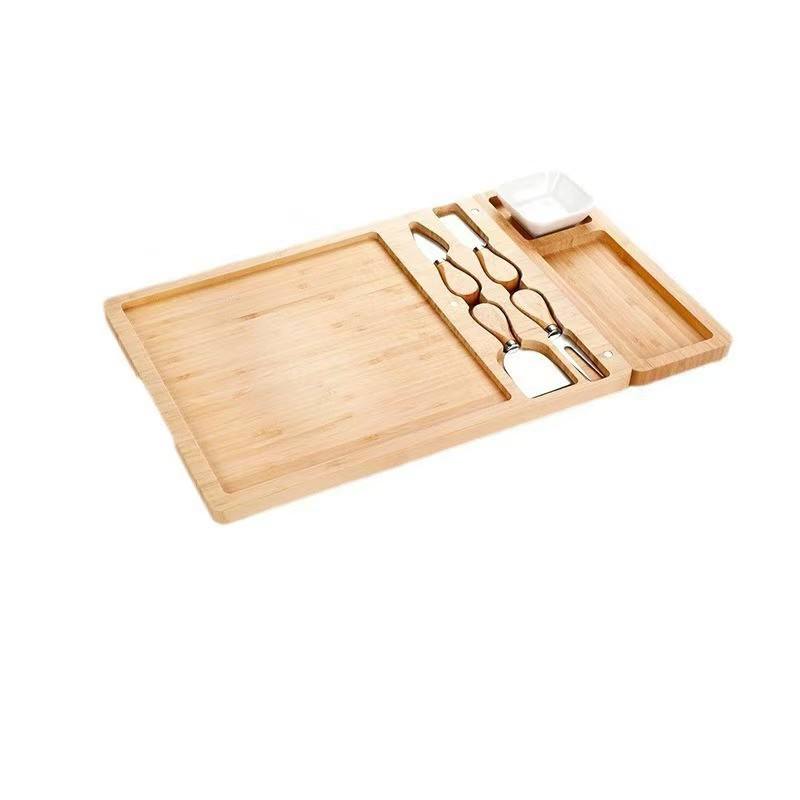 Simple Wooden Serving Tray 21x11.5 Inch With Cheese Knives Snack Groove Sauce Bowl For Fruits Snacks Desserts Sushi