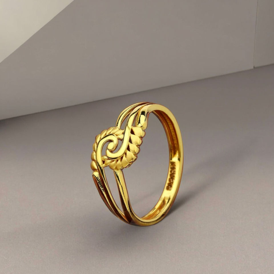 Simple Yellow Gold Leaf Ring for Women | Lightweight Everyday Wear Finger Ring | Nature Inspired