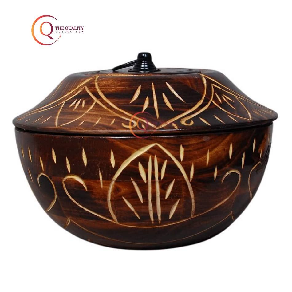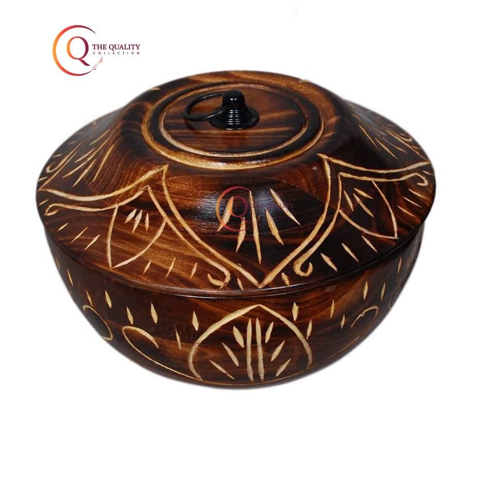 Simple and Classic Design Wooden Casserole With Lid Cover Hot Pot Roti Chapati Storage Box Container With Lid Kitchenware Supply