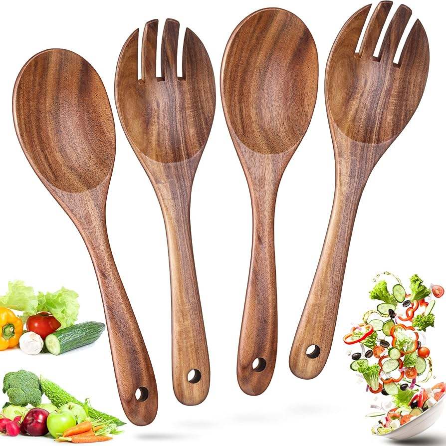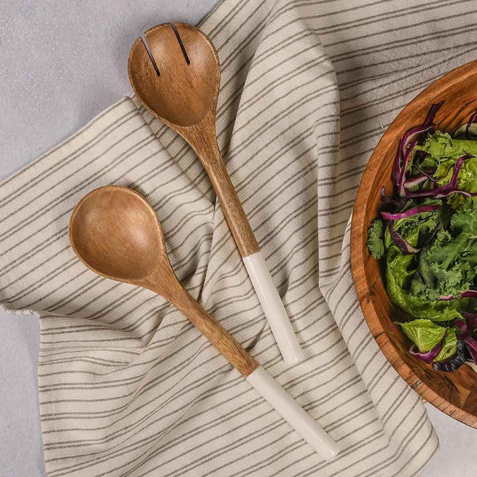 Simple Design Salad Serving Cutlery Sets of mango Wood Salad Spoon & Salad Fork Serving Sets with Natural Wood Color for Home