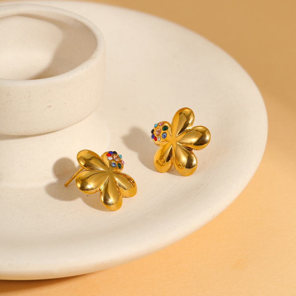 Simple floral diamond-encrusted titanium steel ear studs that do not fade, ns fashionable design sense stainless steel