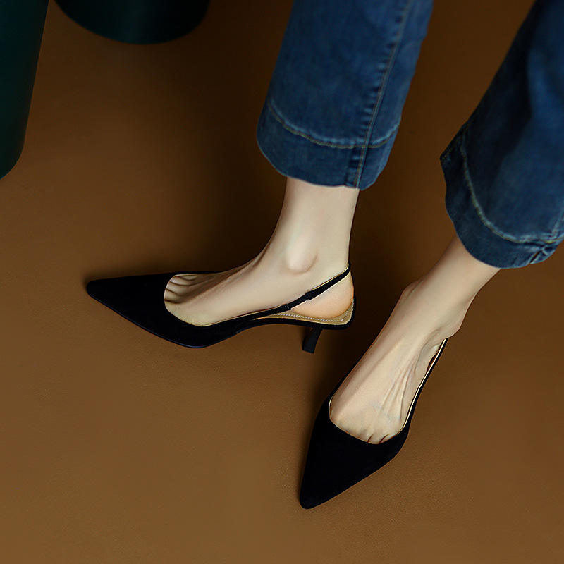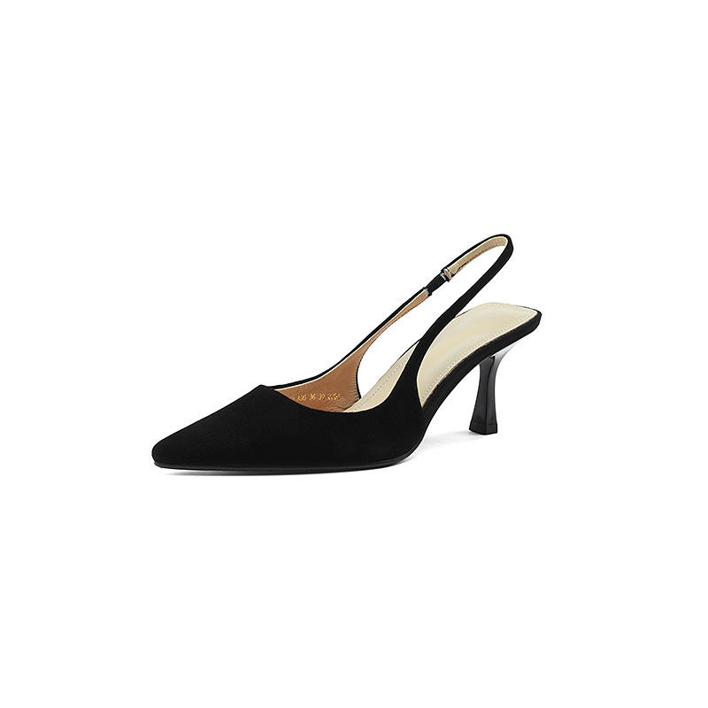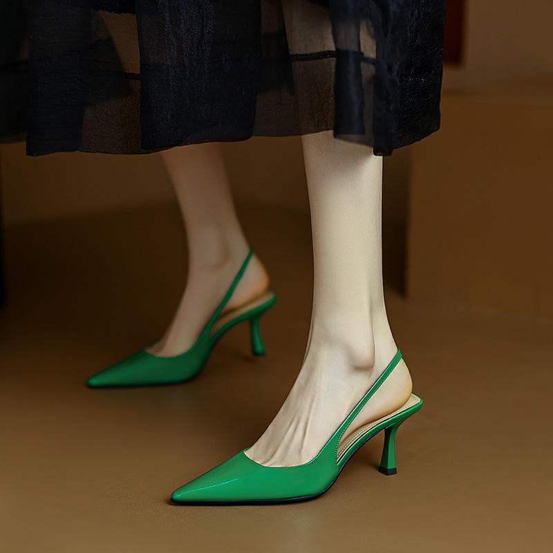 Simple full leather pumps 2025 new slim high heels pointed toe high heel solid color toe cover back hollow sandals for women