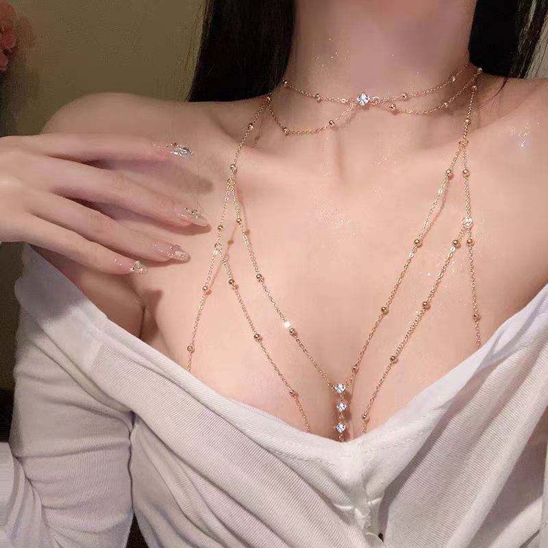Product name:Rhinestone & Pearl Chain On Body Pearl Body Chain